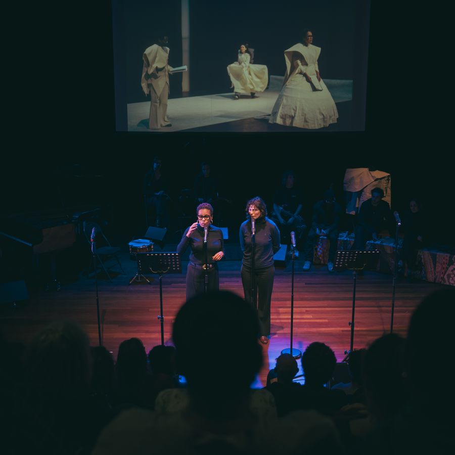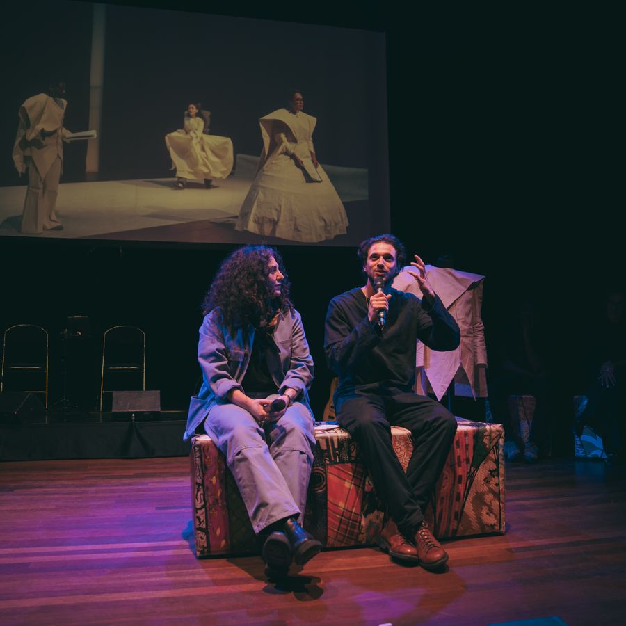 Regisseur Belle van Heerikhuizen en initiatiefnemer Manoushka Zeegelaar Breeveld namen het publiek mee in hun artistieke keuzes. Fragmenten werden muzikaal gelezen, designer Marga Weimans lichtte haar kostuums toe en in gesprek met voormalig politicus Sylvana Simons werd de thematiek van macht verder verdiept.